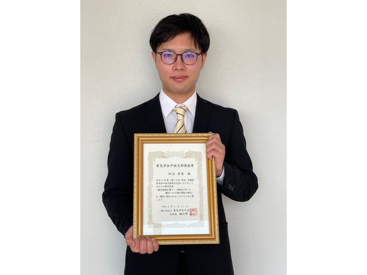 創成科学研究科電気電子情報系専攻松谷勇希さんが電気学会中国支部奨励賞を受賞